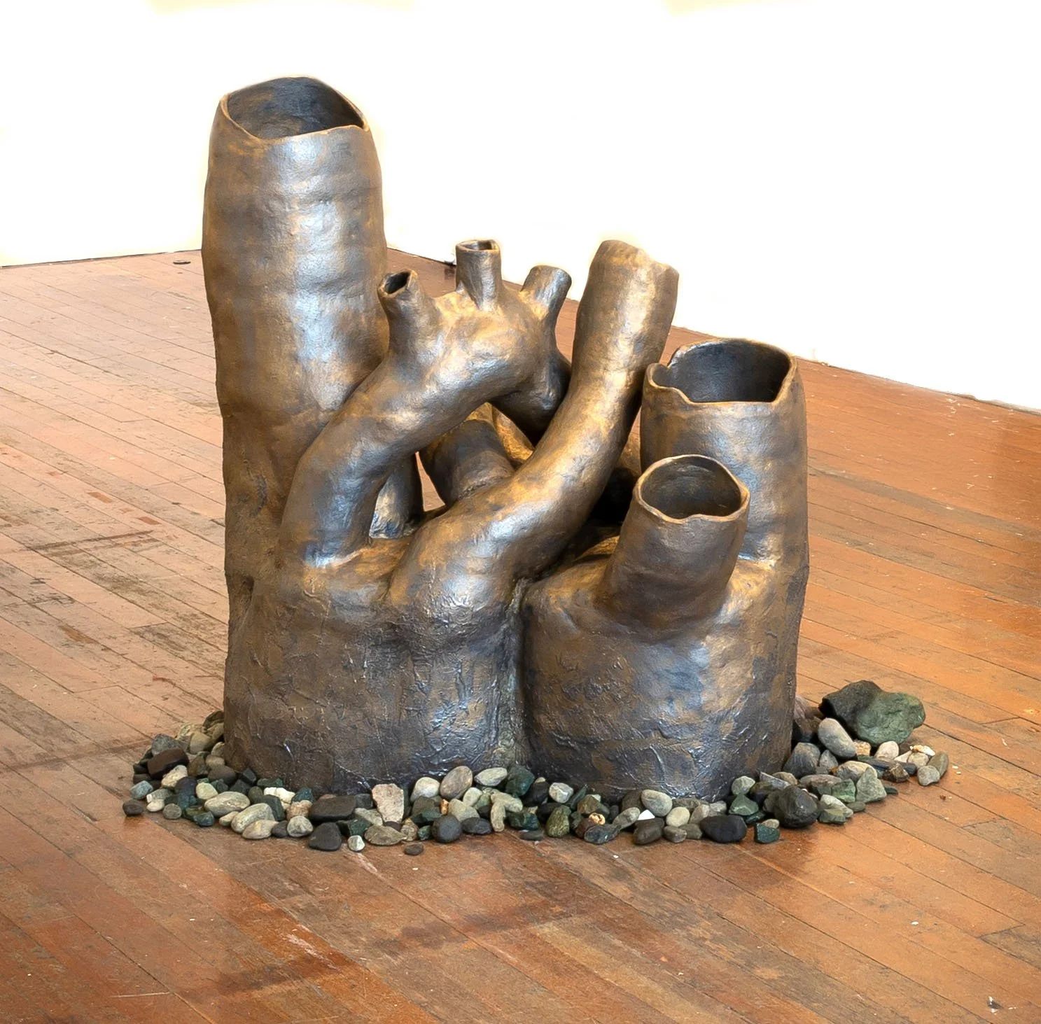 VENA CAVA, 2025, Ceramic, San Pablo Bay shore rock (primarily blueschist and serpentine), 34 x 46 x 27in, Installation at Root Division SF, photo by Hunter Ridenour
