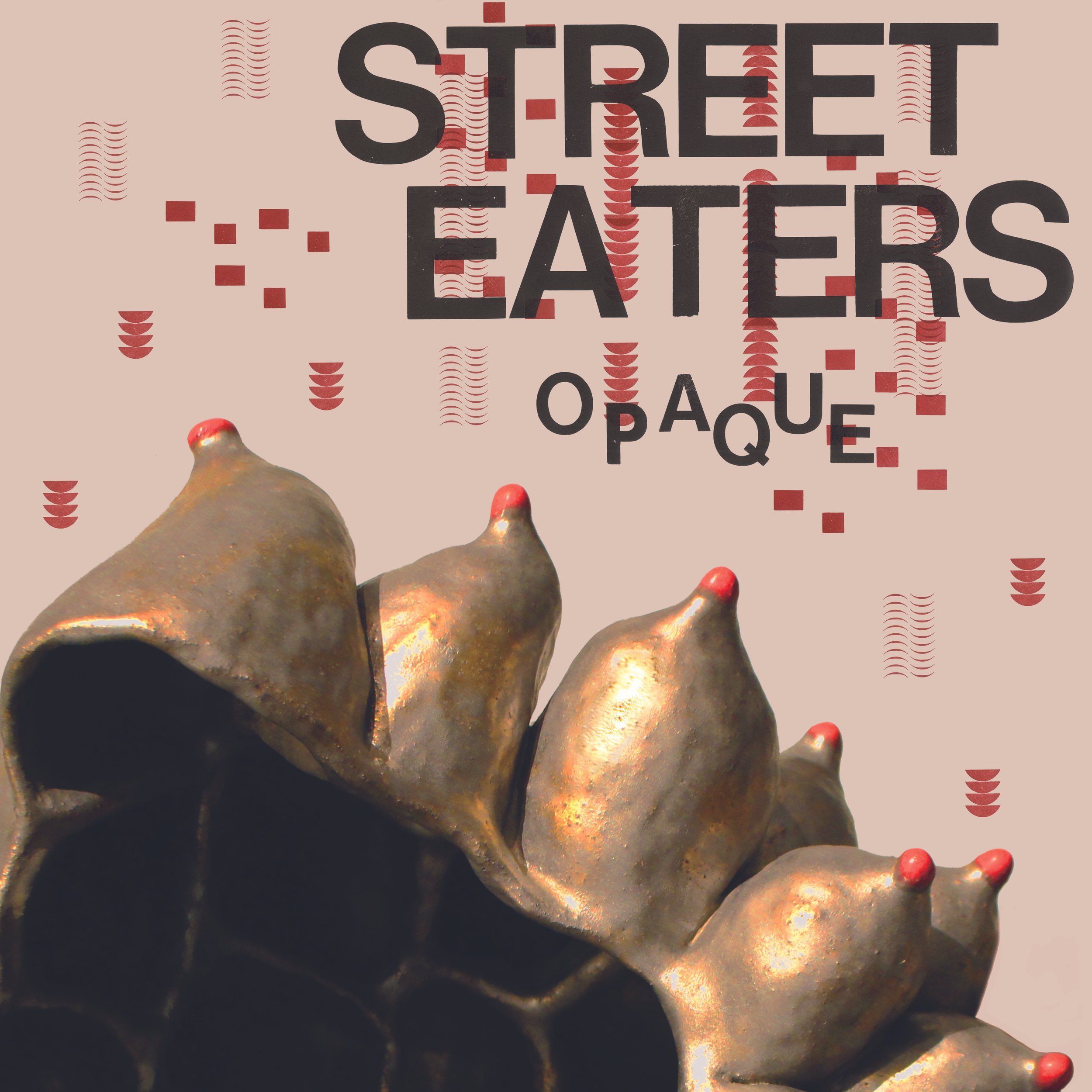 STREET EATERS "OPAQUE" album artwork, 2025, Letterpress, risograph, photo of ceramic sculpture, 12 x 12in